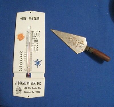 Title (ebay affiliate link): Vintage Lancaster PA Ads Gulf J Brame Witmer Thermometer C Wise Bros Mini Trowel
