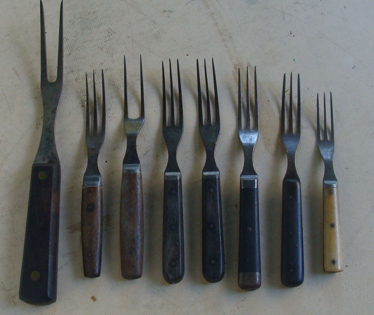 Title (ebay affiliate link): eight late 19th C steel & wood eating forks, no reserve *