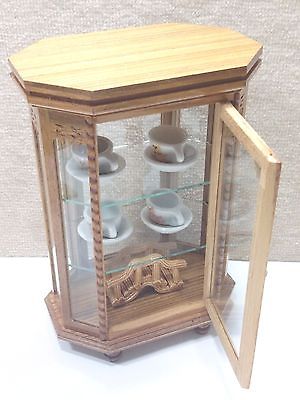 ANTIQUE TEAK WOOD+GLASS DISPLAY CABINET FURNITURE MINIATURE HANDCRAFT SHOW WG4