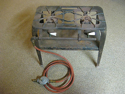 VINT./ANTIQUE # 25AS - 817A BOUBLE BURNER CAST IRON GAS BURNER W/REGULATOR &HOSE