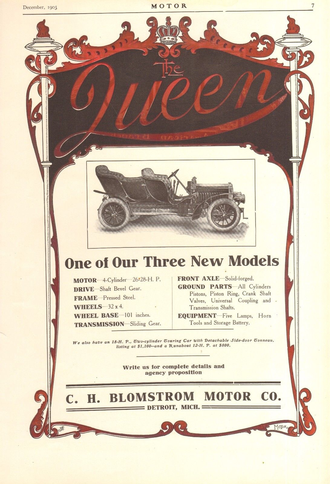 1904 QUEEN TOURING CAR ORIG VINTAGE AD