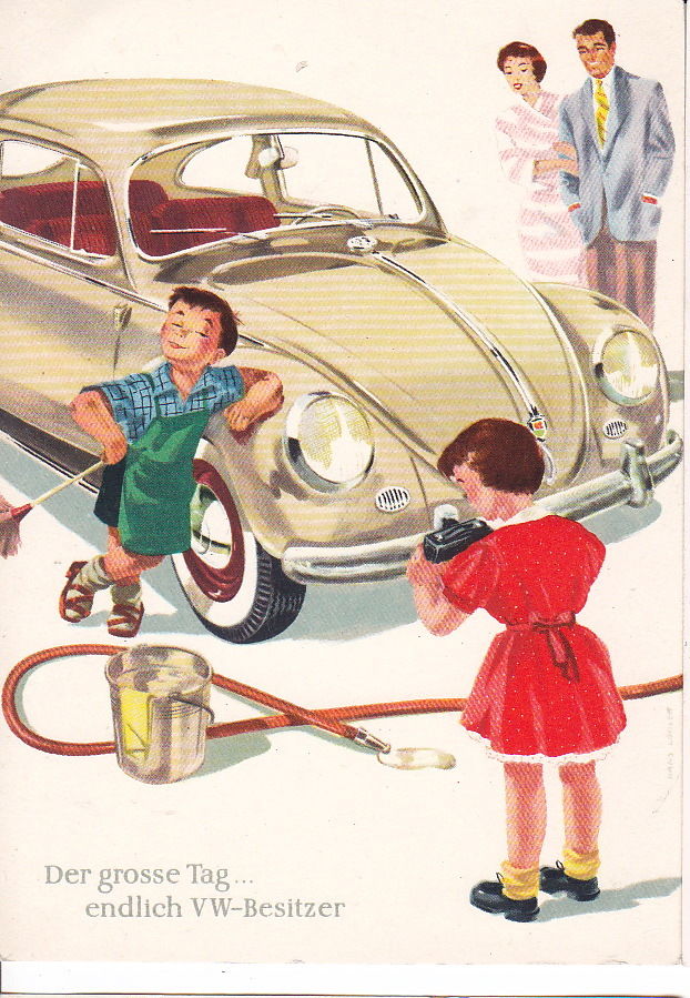 OLD Advertisement Postcard Volkswagen Beetle 1950s
