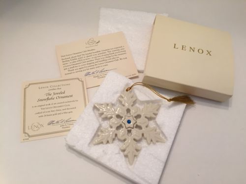 Title (ebay affiliate link): Lenox China Snowflake Ornament NIB with Certificate blue jeweled
