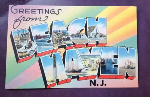 Vtg LINEN LARGE LETTER PC BEACH HAVEN NJ
