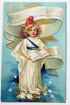 Clapsaddle Patriotic Blonde GIRL Sings My Country Gold Stars Postcard EMB IAP