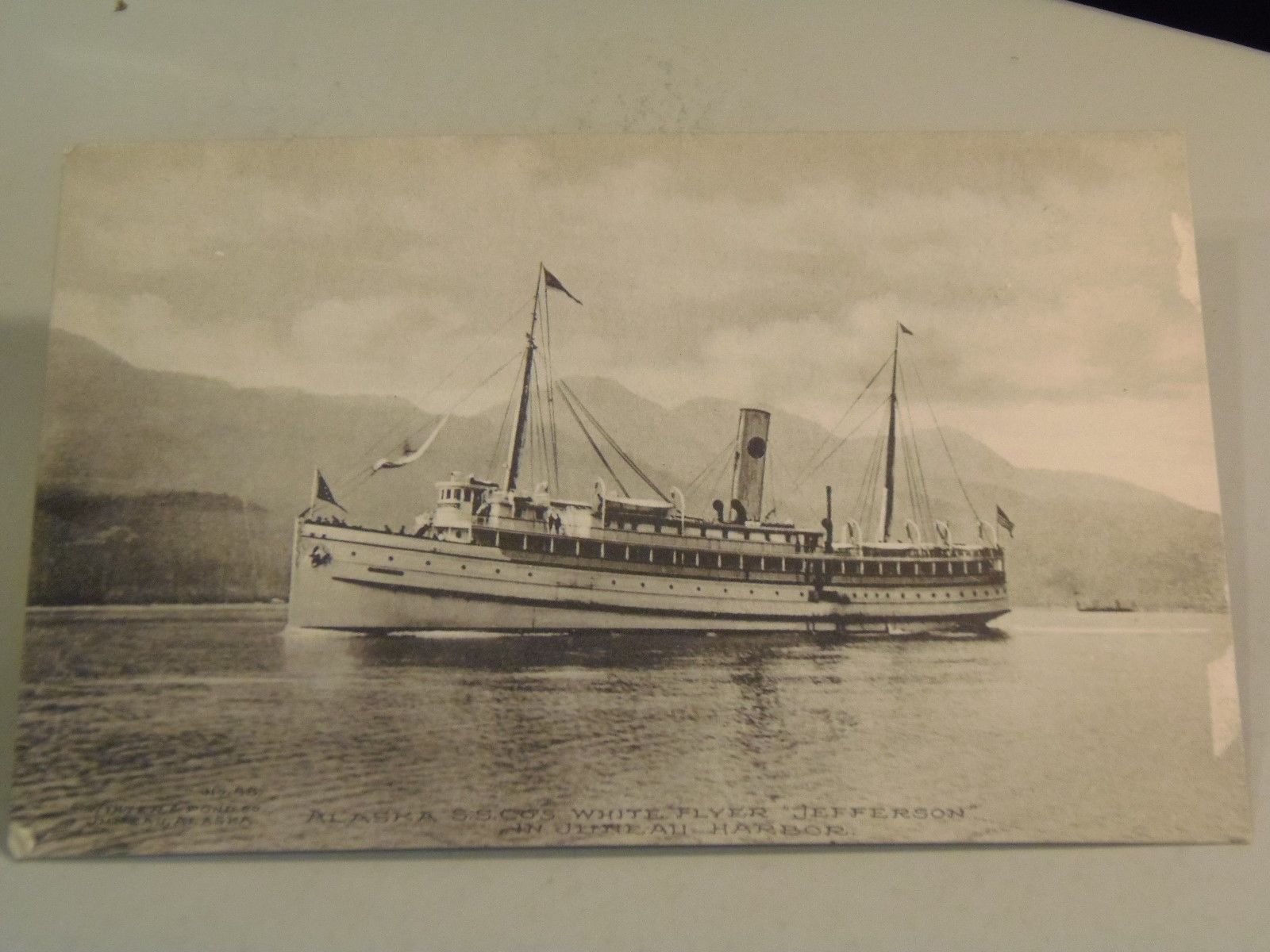 Title (ebay affiliate link): S.S. White Flyer Jefferson, Juneali Harbor, Alaska Postcard