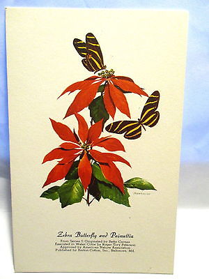 1940s ARTIST SIGNED POSTCARD BARTON-COTTON,ZEBRA BUTTERFLY & POINSETTIA