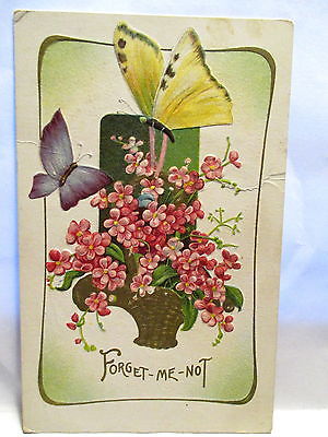 Title (ebay affiliate link): 1910 POSTCARD FORGET ME NOT, BUTTERFLIES AND BASKET OF FLOWERS