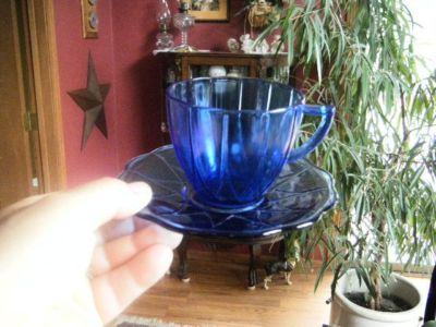 Title (ebay affiliate link): Cobalt Blue Depression Glass NEWPORT Pattern CUP SAUCER