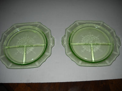 Pair of Green Princess Grill Plates by Hocking Glass