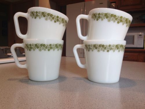 Title (ebay affiliate link): Vintage Lot of4 Pyrex Green Crazy Daisy Spring Blossom Milk Glass Coffee Cup Mug