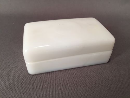 Title (ebay affiliate link): VINTAGE WHITE MILK GLASS VANITY CASE WITH LID ANCHOR HOCKING