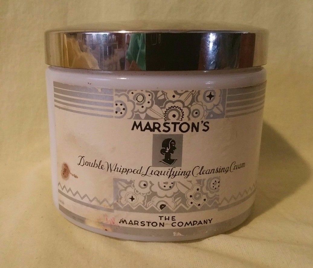 Title (ebay affiliate link): San Diego History Women's Cleaning Cream from Marston's Depart. Store Milk Glass