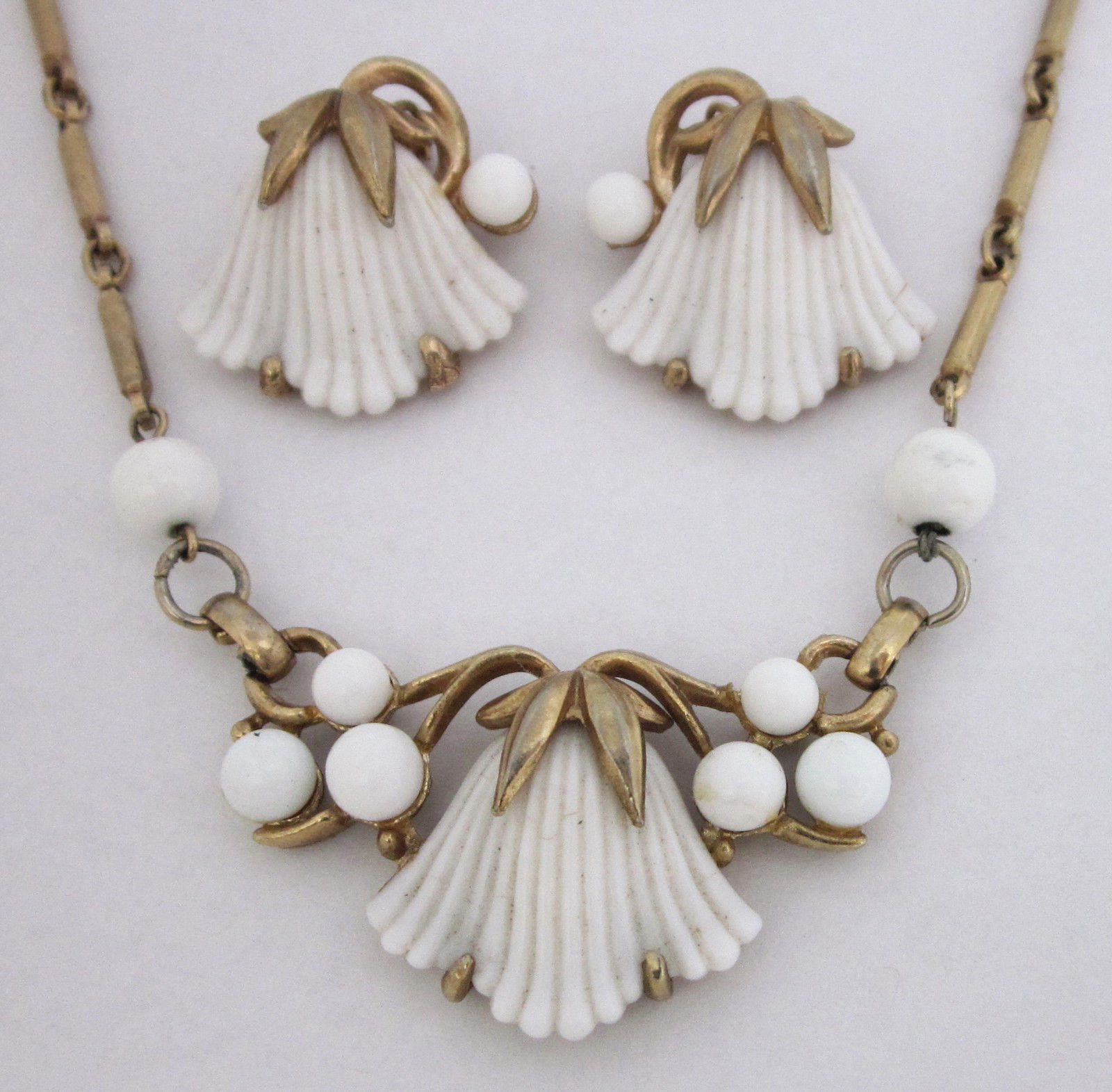 Vintage Milk Glass Flower Cabochon Necklace Earrings