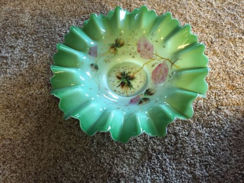 Title (ebay affiliate link): Opalescent Milk Glass Overlay Handpainted Green BRIDES BASKET