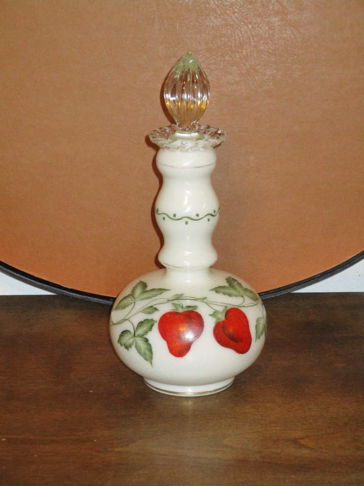 Title (ebay affiliate link): 1940'S FENTON SILVER CREST MILK GLASS PERFUME BOTTLE 9" TALL HAND PAINTED