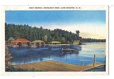 WB Postcard-Boat Houses, Granliden Cove, Lake Sunapee NH in 1937-Boats-VF