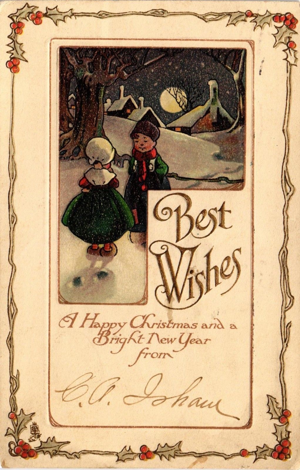 DR JIM STAMPS US DUTCH KIDS SCENIC CHRISTMAS WISHES POSTCARD 1912 FLAG CANCEL