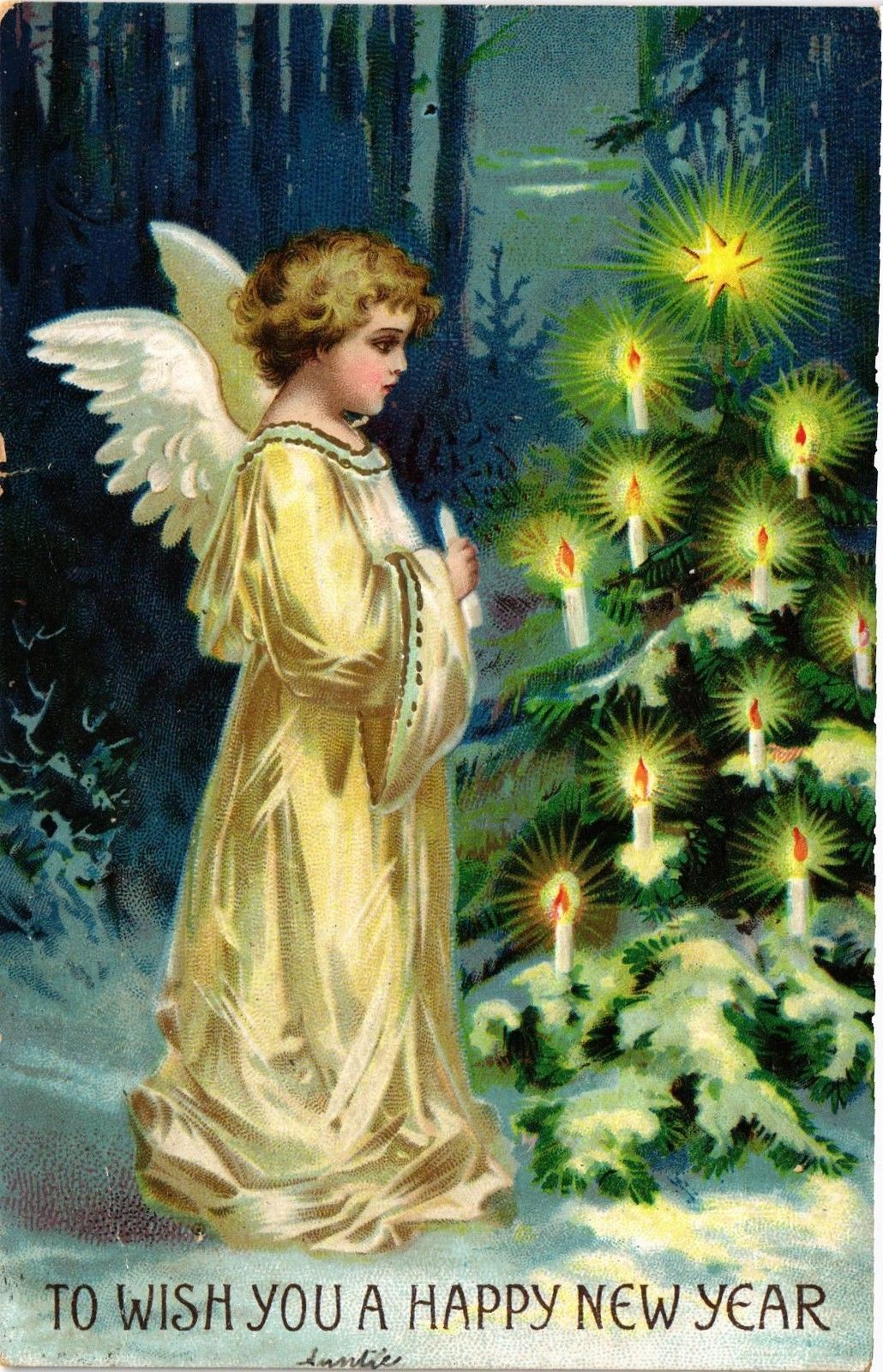 DR JIM STAMPS US ANGEL HAPPY NEW YEAR RAILWAY POST OFFICE POSTCARD RPO 1908