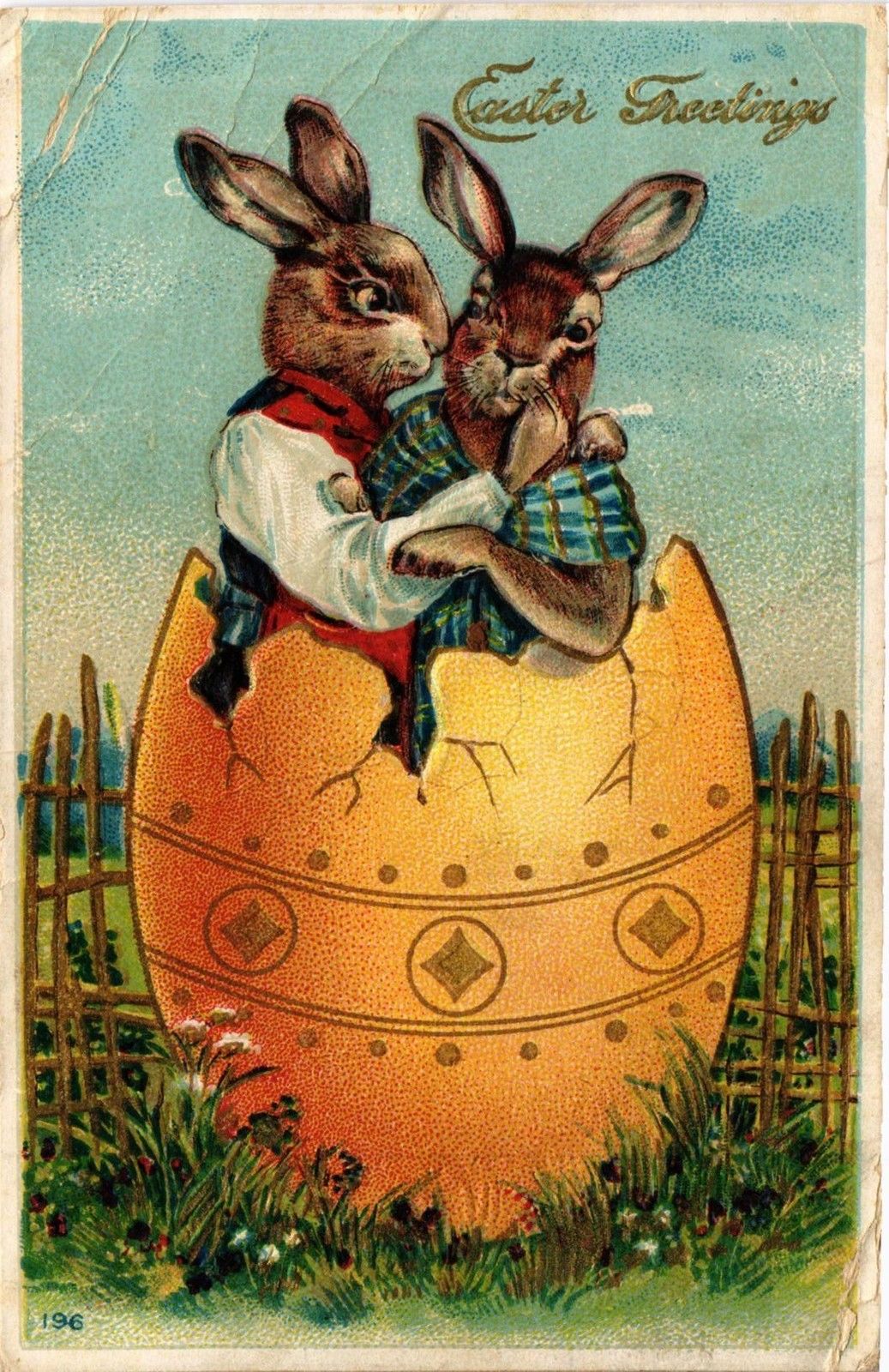 Title (ebay affiliate link): DR JIM STAMPS US BUNNY COUPLE IN EASTER EGG POSTCARD