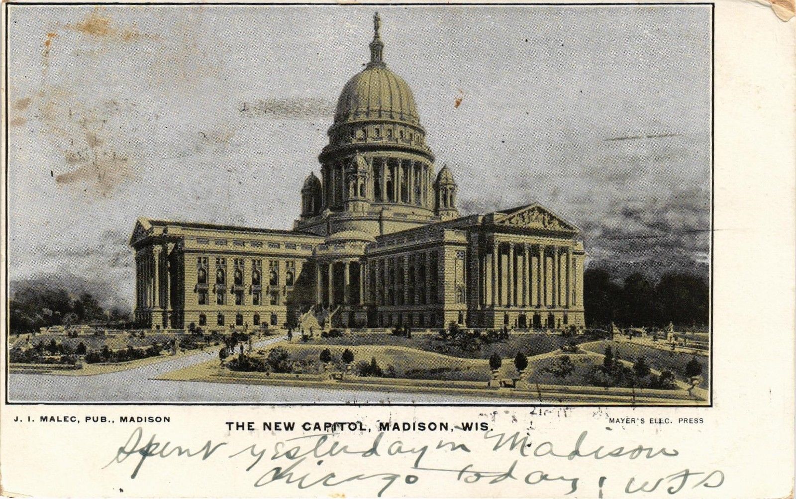 DR JIM STAMPS US MADISON, WIS CAPITOL BLDG RAILWAY POST OFFICE POSTCARD RPO