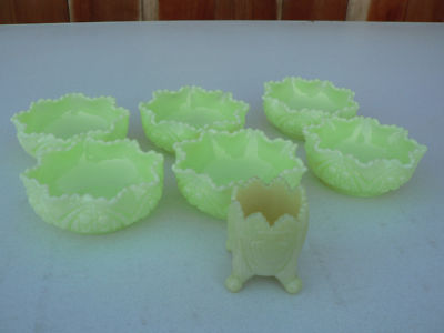 Title (ebay affiliate link): 4 CUSTARD GLASS BERRY BOWLS AND A TOOTHPICK HOLDER