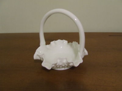Fenton Hobnail Small Ruffled Basket White milk glass