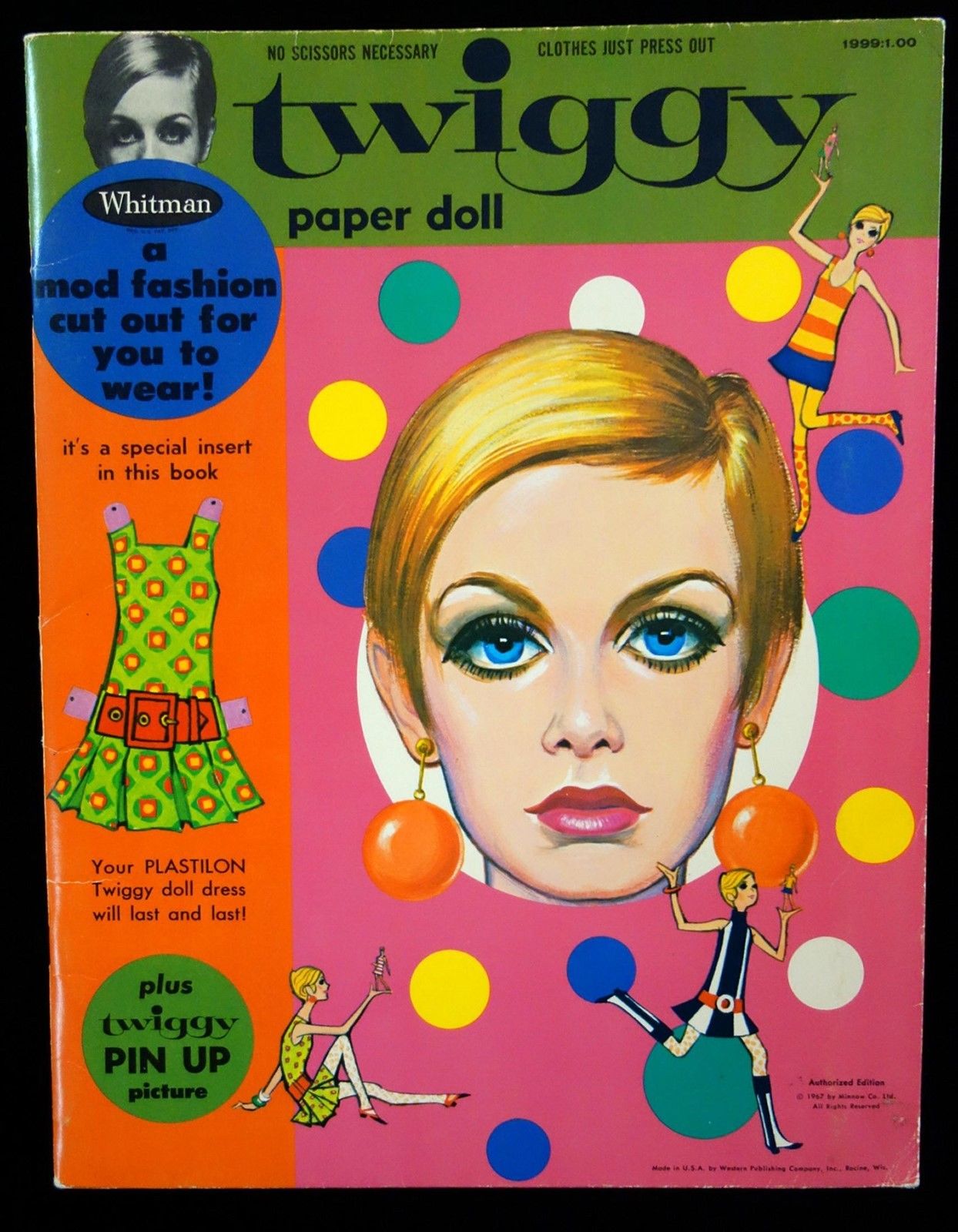 Title (ebay affiliate link): Un-Cut Paper Doll Book Twiggy with Child Size Plastilon Dress- Just like Twiggy