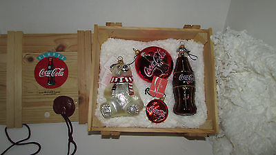 COCA COLA COKE POLONAISE KURT ADLER HAND BLOWN GLASS ORNAMENTS WOOD CRATE 1996