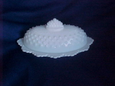 FENTON RUFFLED HOBNAIL MILK GLASS BUTTER DISH