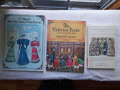 Lot of 3 Victorian Books~Needlework-Godeys- Clothes Patterns-Victorian Parlor