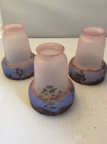 3 Antique Chipped Ice Reverse Painted Lamp Shades Desert Scene