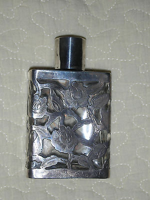 OVERLAY STERLING SILVER GLASS PERFUME BOTTLE SCENT FLASK Mexico c1960s
