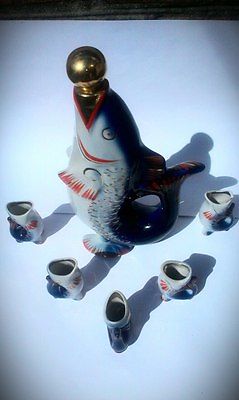 Title (ebay affiliate link): Soviet Union Russia USSR porcelain vodka decanter with 5 glasses tumblers 1970s
