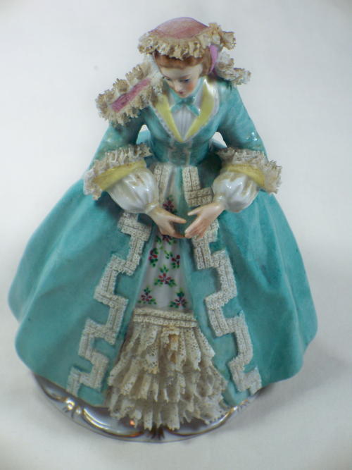Title (ebay affiliate link): ANTIQUE GODEY'S FASHION SITZENDORF PORCELAIN FIGURE MARCH 1863 RARE