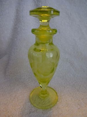 Art Nouveau Etched Vaseline Glass Perfume Bottle w/Stopper and INTACT Dauber 107