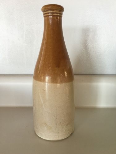 Title (ebay affiliate link): Old Vintage Tan & Beige Glazed Stoneware Crock Liquor Beer Bottle Jug