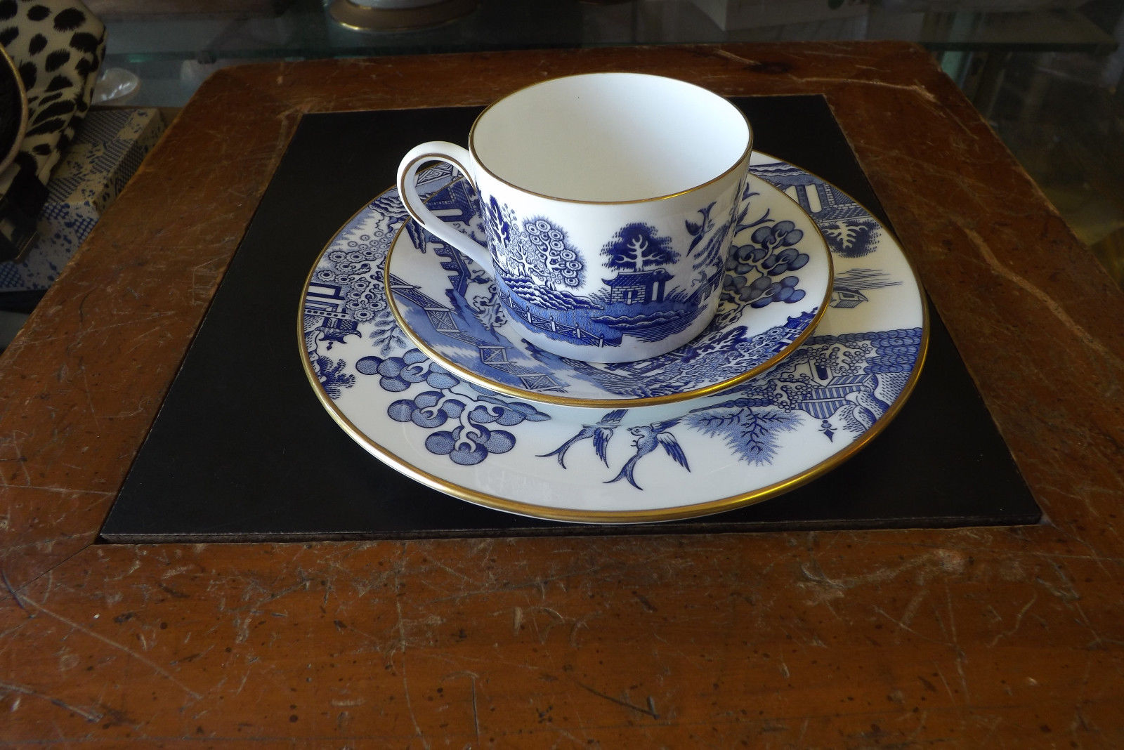 COALPORT Bone China Cup & Saucer 3 Pc Set Purple Blue Willow