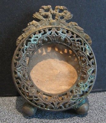 Antique Small Round Brass Picture Frame With Open Ribbon Design