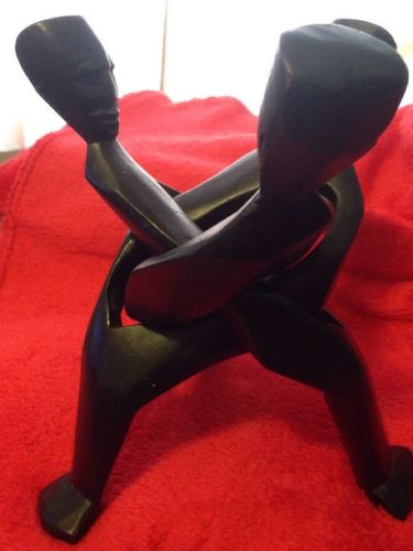 Carved Wooden Tripod Bowl Holder/Stand Black 3 Men