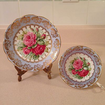 Title (ebay affiliate link): FOLEY BONE CHINA BABY BLUE GOLD TRIM CABBAGE ROSES SIGNED P.GARNET CUP & SAUCER