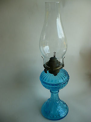 RARE VICTORIAN ORIGINAL BLUE GLASS OIL LAMP WITH FLYING FISH AND SEA SHELLS