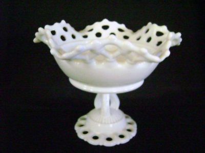WESTMORELAND MILK GLASS COMPOTE LACE OPEN EDGE DORIC
