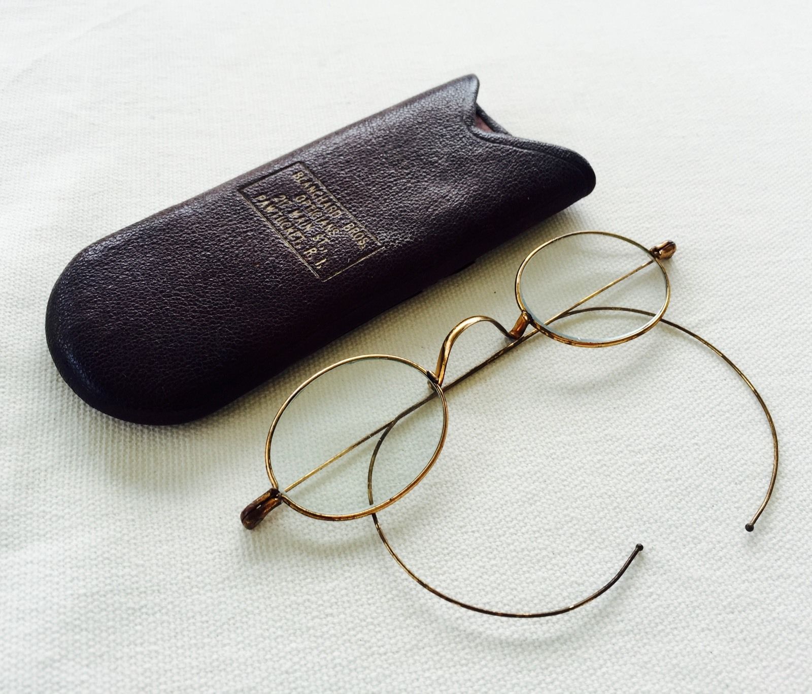 Title (ebay affiliate link): Antique GOLD Tone CIVIL WAR Looking Eyeglasses Spectacles with Slide Case