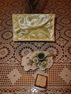 Title (ebay affiliate link): T. Capodimonte Calla Lily Candle Holders Satin Box NIB!