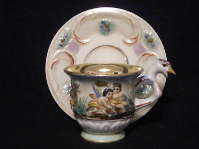 1960+ R. CAPODIMONTE Majolica DRAGON CUP & SAUCER