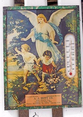 1940's Advertising Thermometer-AJ Hott Ambulance+Funeral Service-Guardian Angel