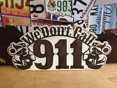 Title (ebay affiliate link): WE DONT CALL 911 PISTOLS EMBOSSED METAL SIGN SHOP HOME GARAGE MAN CAVE..