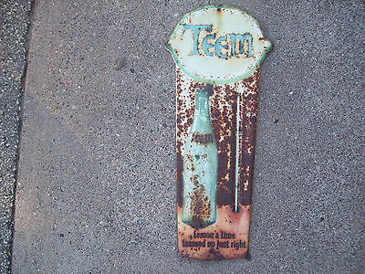 Thermometer TEEM soda Vintage metal tin display Lemon Lime soft drink teamed up