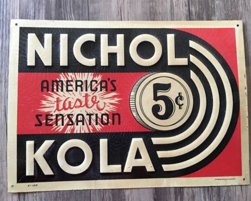 Title (ebay affiliate link): Nichol Kola Soda 1930's - 1940's Advertising Embossed Cola Sign